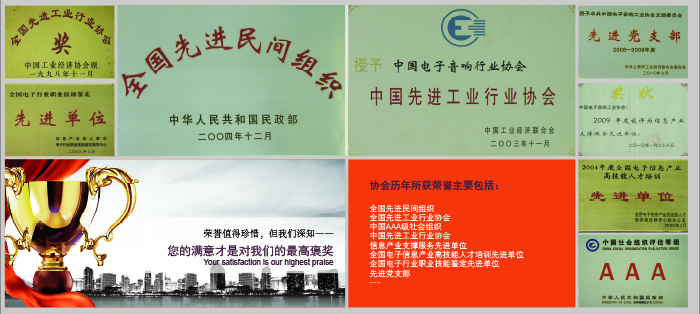 Registered in the Ministry of Civil Affairs,The Working Committee of the Central Committee and State Organs of the Communist Party of China is the leading Party building organ of the CAIA. Now it owns more than 400 members, which are located in about 20 provinces as well as Hongkong area. The association members cover almost all the famous brands of well-known enterprises and the association founds authoritative basis of China audio industry.