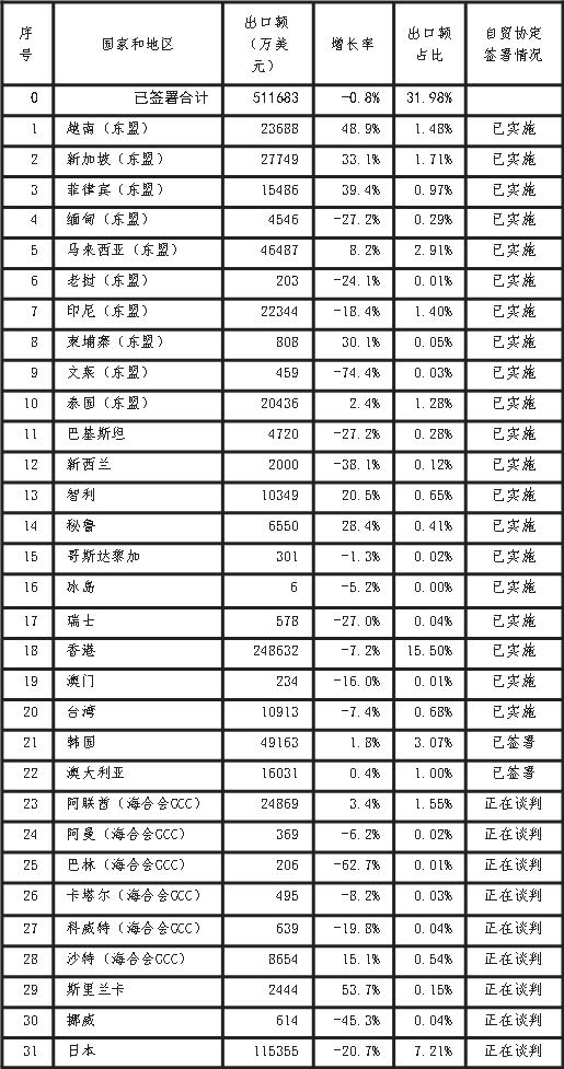 1、更重視已與中國簽署自由貿(mào)易協(xié)定國家和地區(qū)的出口市場