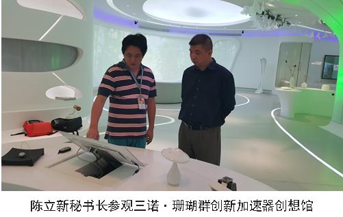 11月24日,陳立新秘書長首先來到了深圳市三諾數(shù)碼影音有限公司參觀了珊瑚群創(chuàng)新加速器、深圳智慧生活創(chuàng)想館,并與三諾集團(tuán)劉志雄董事長、張謙副總及黃海彥總監(jiān)進(jìn)行了深入交流和探討。劉志雄董事長介紹說,三諾集團(tuán)為了幫助創(chuàng)業(yè)公司,于今年聯(lián)手騰訊、京東,共同打造“珊瑚群創(chuàng)新加速器”,將為中國乃至全球的創(chuàng)新創(chuàng)業(yè)者構(gòu)建一個(gè)資源豐富、生態(tài)多元的完整生態(tài)系統(tǒng)成長環(huán)境,通過設(shè)計(jì)驅(qū)動(dòng)創(chuàng)新、技術(shù)驅(qū)動(dòng)創(chuàng)新、商業(yè)模式創(chuàng)新和跨界資源整合,為創(chuàng)業(yè)企業(yè)提供一站式、全鏈條的服務(wù),幫助他們實(shí)現(xiàn)夢想,孵化更多“小而美”的顛覆式創(chuàng)新公司,實(shí)現(xiàn)更加美好的未來。