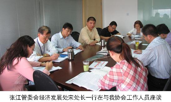 2010年9月27日,上海浦東新區(qū)張江高科技園區(qū)管理委員會的經(jīng)濟(jì)發(fā)展處宋衛(wèi)華處長,王海燕、王楹等一行蒞臨我協(xié)會指導(dǎo)協(xié)會工作,并與我協(xié)會陳立新秘書長、薛巧根、貢科、鄭暐、宋汶鎂等進(jìn)行了座談。