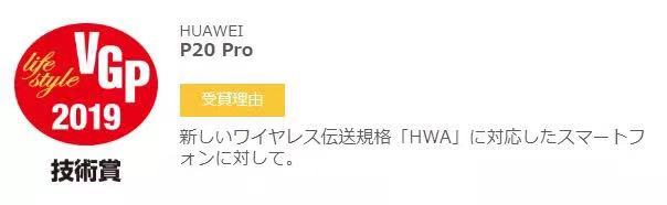 這次HUAWEI P20 Pro一舉摘得“日本VGP2019技術(shù)大獎”,正因它是“適用于兼容新無線傳輸標準‘HWA’的智能手機”。