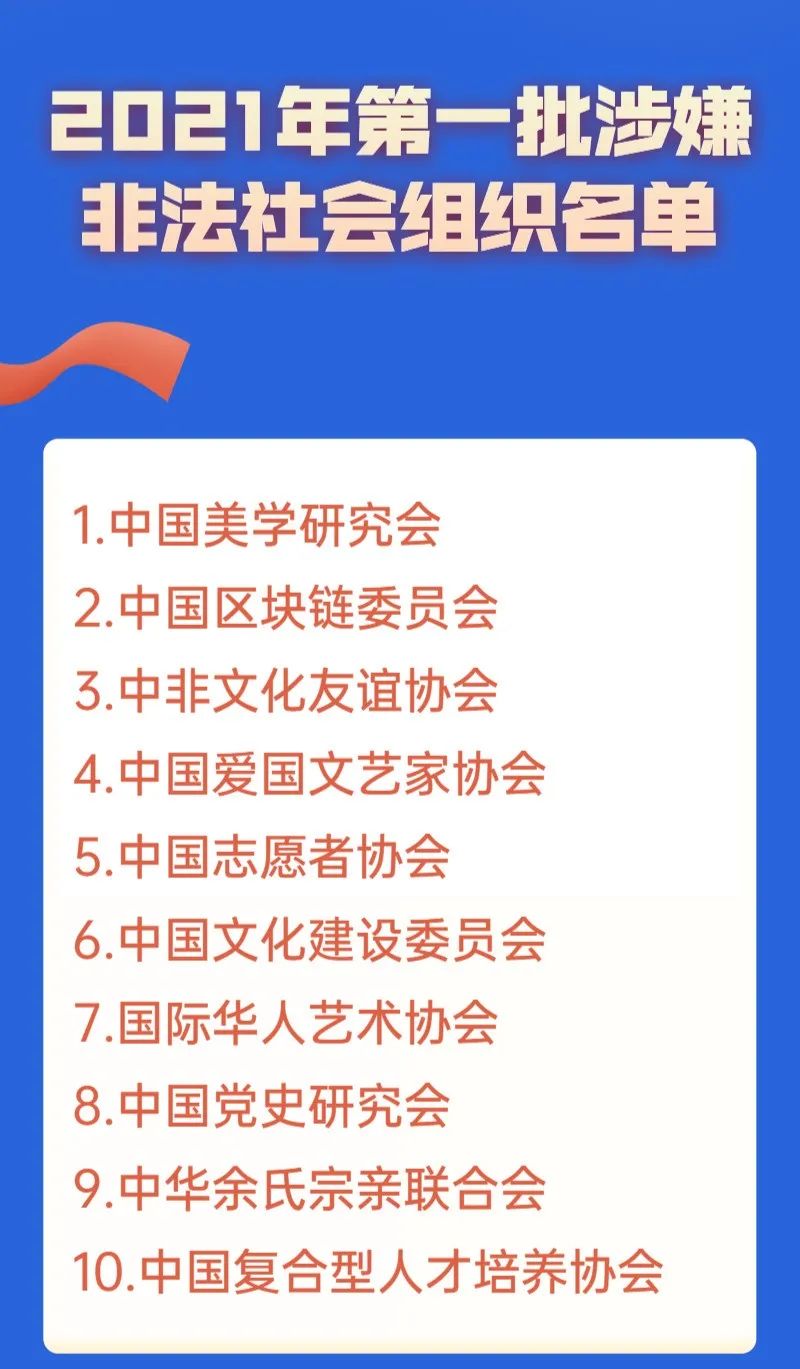 近年來,民政部門持續(xù)開展打擊整治非法社會組織工作,依法處置了大批非法社會組織,有效凈化了社會組織發(fā)展環(huán)境,取得了良好的社會效果。但是,一些組織和人員仍然罔顧法律紅線,繼續(xù)違法開展活動。為進一步加大打擊整治力度,充分發(fā)揮社會監(jiān)督作用,近期民政部已將三批涉嫌非法社會組織名單予以公布,提醒社會公眾謹防上當受騙。同時,歡迎社會各界登錄“中國社會組織政務服務平臺”(https://www.chinanpo.gov.cn/)的“投訴舉報”欄目,提供涉嫌非法社會組織的活動線索。