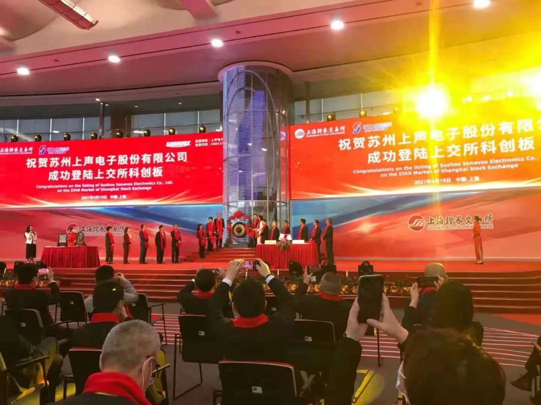 2021年4月19日,國內(nèi)技術(shù)領(lǐng)先的汽車聲學產(chǎn)品方案供應(yīng)商——蘇州上聲電子股份有限公司(簡稱上聲電子)正式登陸上交所科創(chuàng)板。中國電子音響行業(yè)協(xié)會秘書長黃桅、名譽秘書長陳立新應(yīng)邀出席了上市儀式。