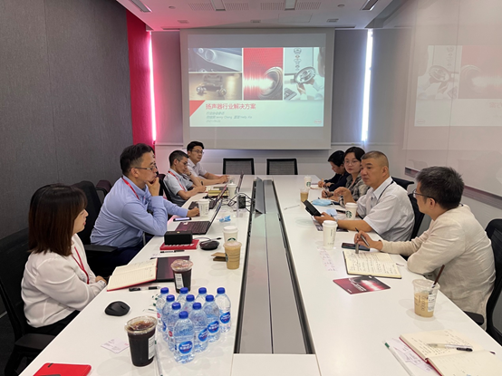 雙方在會(huì)議室就揚(yáng)聲器行業(yè)解決方案進(jìn)行了會(huì)談。漢高亞太區(qū)產(chǎn)品開發(fā)和技術(shù)服務(wù)副總裁呂道強(qiáng)博士、大中華及亞太地區(qū)技術(shù)總監(jiān)徐光耀、亞太區(qū)資深技術(shù)經(jīng)理周緒崗、亞太區(qū)資深技術(shù)經(jīng)理程健翼、通用制造與維護(hù)事業(yè)部高級(jí)技術(shù)經(jīng)理褚洪雨出席了會(huì)議。