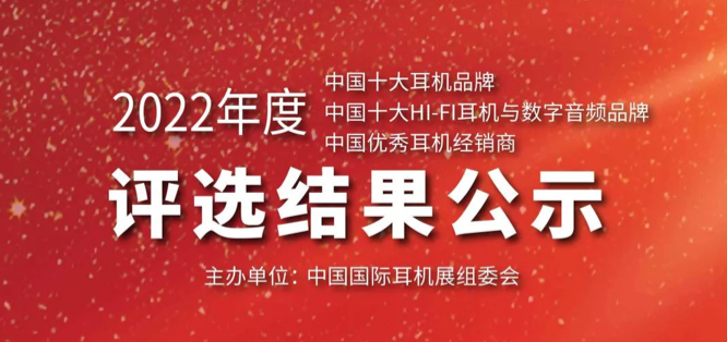 2022年度中國(guó)十大耳機(jī)品牌、中國(guó)十大HI-FI耳機(jī)與數(shù)字音頻品牌、中國(guó)優(yōu)秀耳機(jī)經(jīng)銷商評(píng)選結(jié)果公示
