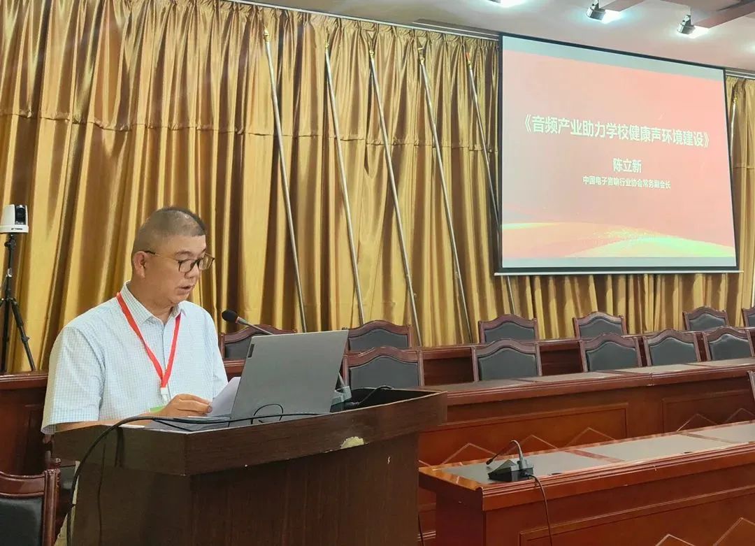 中國電子音響行業(yè)協(xié)會(huì)常務(wù)副會(huì)長陳立新受邀出席“健康聲環(huán)境,校園好聲音”學(xué)校健康聲環(huán)境論壇,并作《音頻產(chǎn)業(yè)助力學(xué)校健康聲環(huán)境建設(shè)》主題報(bào)告。