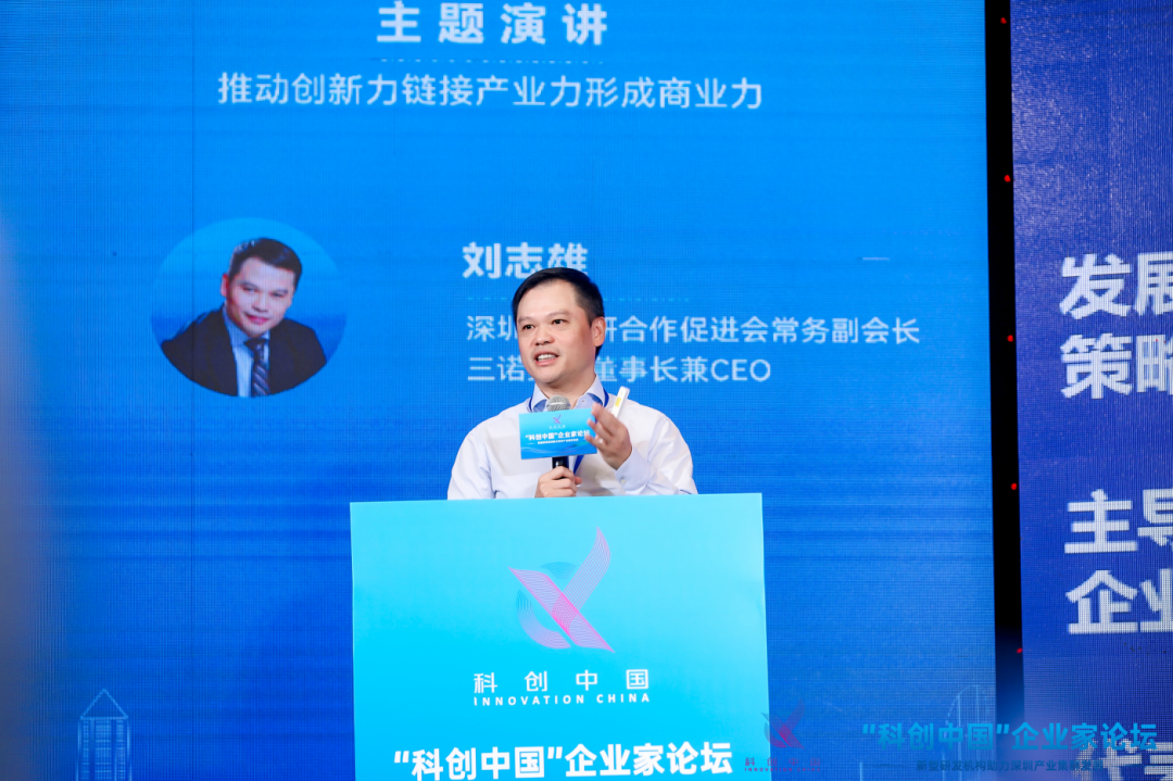 三諾劉志雄以“推動(dòng)創(chuàng)新力、鏈接產(chǎn)業(yè)力、形成商業(yè)力”為題進(jìn)行了精彩分享。