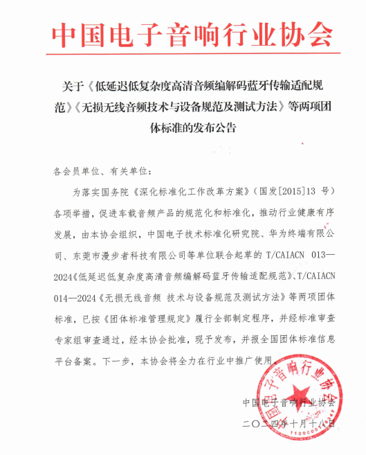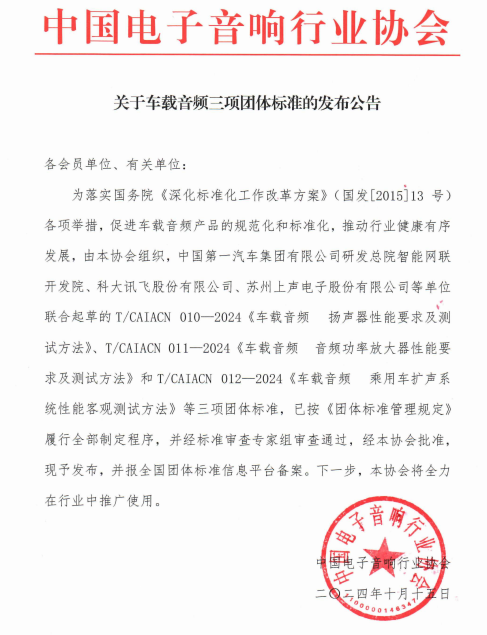 ◆ 協(xié)會|關(guān)于車載音頻三項團體標準的發(fā)布公告