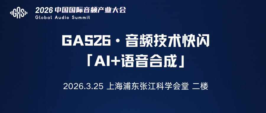 2026中國國際音頻產(chǎn)業(yè)大會(GAS)同期將舉辦“GAS26 · 音頻技術快閃「AI+語音合成」” !