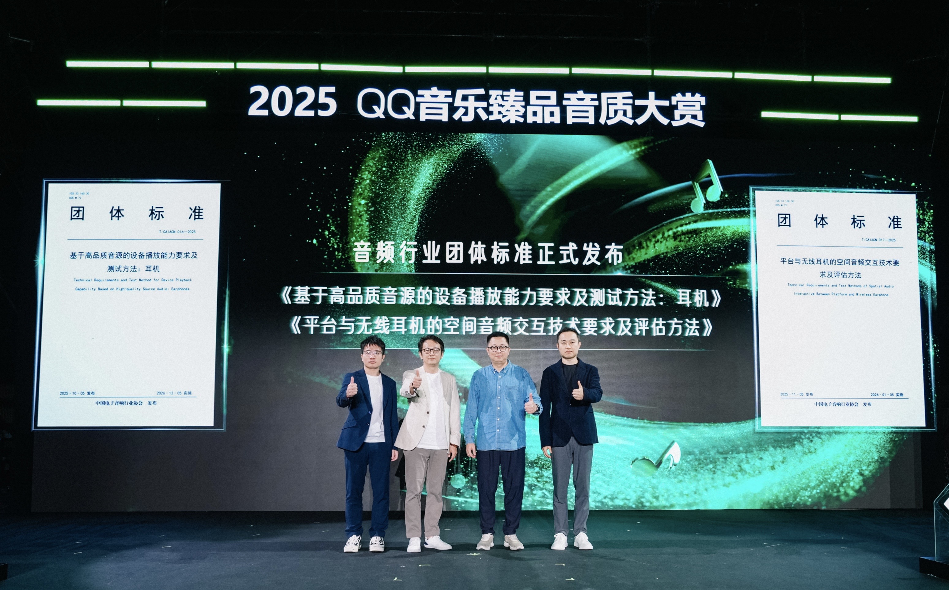 由中國(guó)電子音響行業(yè)協(xié)會(huì)指導(dǎo),“2025 QQ音樂(lè)臻品音質(zhì)大賞”于11月5日在深圳成功舉辦。騰訊音樂(lè)娛樂(lè)集團(tuán)相關(guān)業(yè)務(wù)負(fù)責(zé)人、中國(guó)電子音響行業(yè)協(xié)會(huì)黃榮添副會(huì)長(zhǎng)、曾德鈞副會(huì)長(zhǎng)、彭泓副秘書(shū)長(zhǎng),以及聲學(xué)專(zhuān)家、知名音樂(lè)人及頭部音頻品牌合作伙伴齊聚一堂,共同見(jiàn)證《基于高品質(zhì)音源的設(shè)備播放能力要求及測(cè)試方法:耳機(jī)》《基于平臺(tái)與無(wú)線耳機(jī)的空間音頻交互技術(shù)要求》兩項(xiàng)重要團(tuán)體標(biāo)準(zhǔn)的發(fā)布,以及“2025 QQ音樂(lè)臻享獎(jiǎng)”的揭曉。