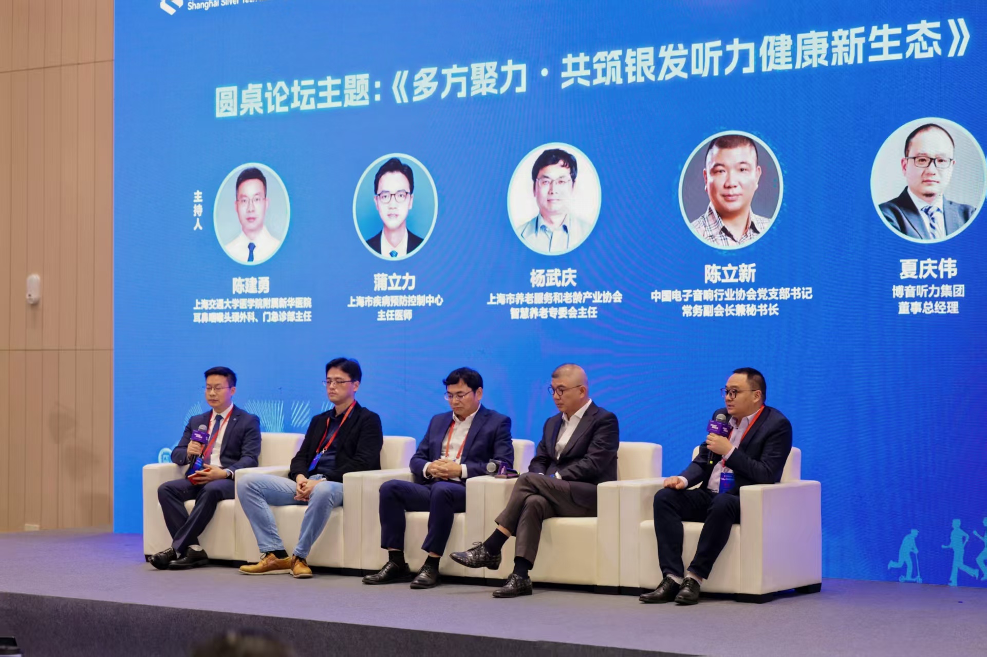 隨后的圓桌論壇,由上海交通大學(xué)醫(yī)學(xué)院附屬新華醫(yī)院主任陳建勇主持,邀請中國電子音響行業(yè)協(xié)會常務(wù)副會長兼秘書長陳立新、上海市疾病預(yù)防控制中心主任醫(yī)師蒲立力、上海市養(yǎng)老服務(wù)和老齡產(chǎn)業(yè)協(xié)會智慧養(yǎng)老專委會主任楊武慶、博音聽力集團(tuán)董事總經(jīng)理夏慶偉等嘉賓參與。