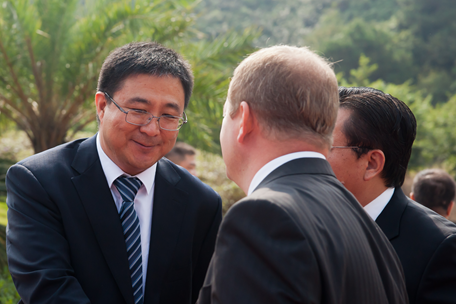 參加會(huì)議的部分領(lǐng)導(dǎo)合影留念(右起為景廣軍副局長(zhǎng)、陳立新秘書(shū)長(zhǎng)、趙波副司長(zhǎng)、李曉東副區(qū)長(zhǎng)、柯瑞德總領(lǐng)事、黃桅副秘書(shū)長(zhǎng))