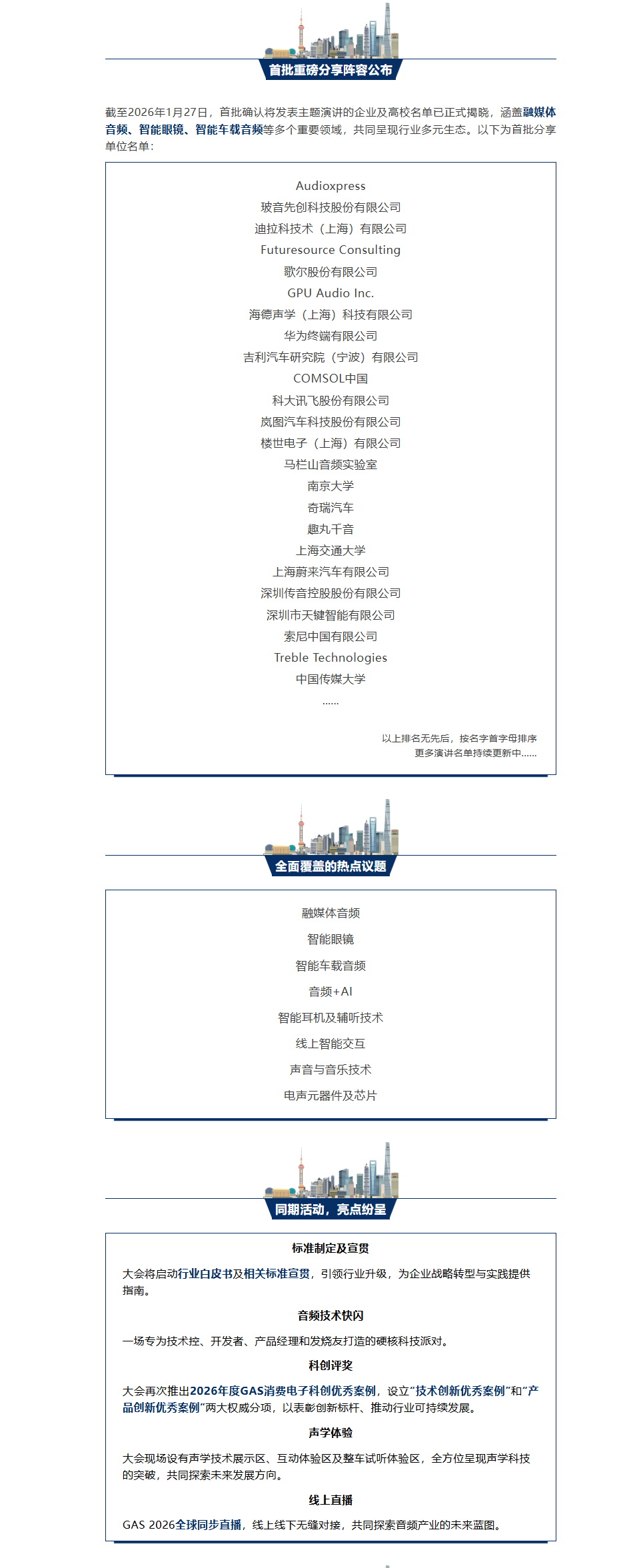 2026中國(guó)國(guó)際音頻產(chǎn)業(yè)大會(huì)(GAS)已定檔于2026年3月25日-26日在上海張江科學(xué)會(huì)堂召開(kāi)。