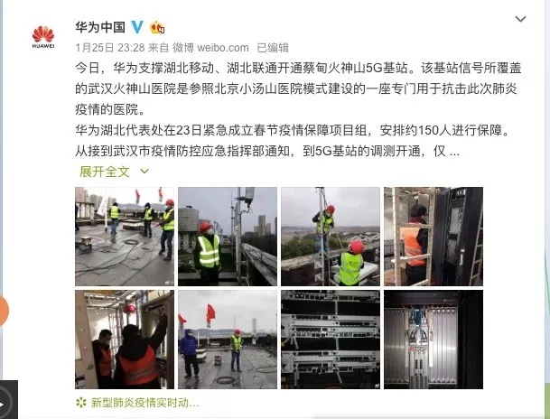 華為馳援武漢“小湯山”5G基站開(kāi)通,捐款3000萬(wàn)元